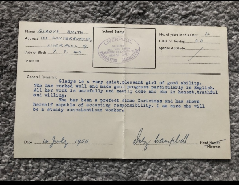 Another example of a report card, this time from Gilmour Secondary Modern.